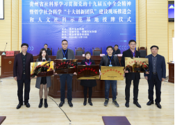 会上,贵州大学农业经济研究团队、贵州师范大学喀斯特生态文明研究创新团队、遵义师范学院长征文化研究与传承团队、安顺学院贵州山地特色新型城镇化研究团队、贵州省民族研究学会民族问题研究团队、中国天眼科普基地、贵阳市修文县龙场镇龙冈书院等做了交流发言,对2019年度“十大创新团队”和2020年人文社科示范基地进行授牌。