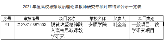 近日,我校马列学院教师刘金新的项目《脱贫攻坚精神融入高校思政课教学研究》通过2021年度高校思想政治理论课教师研究专项评审,成功获得2021年度高校思想政治理论课教师研究专项公示。
