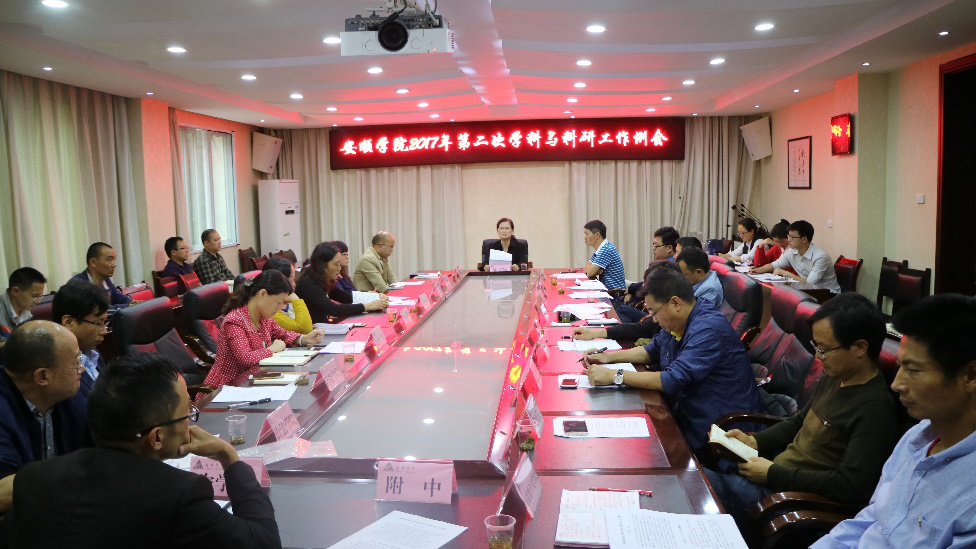 6月30日下午,我校2017年第二次学科与科研工作例会在行政楼二楼会议室召开。安顺学院副校长熊国敏教授出席会议。各学院分管科研院领导、试验区发展研究中心负责人、科研信息员、科研处全体人员参加会议。会议由科研处张来处长主持。