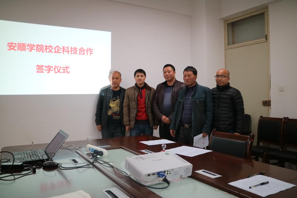 3月15日,安顺学院与镇宁自治县惠群绿色农业综合开发有限公司及镇宁自治县兴创种养殖农民专业合作社在科研处会议室签订校企合作协议,我校科研处处长张来教授出席签约仪式,镇宁县科技局副局长张学良,惠群绿色农业综合开发有限公司负责人盛明贵,兴创种养殖农民专业合作社负责人陈家龙等参加合作签约仪式。