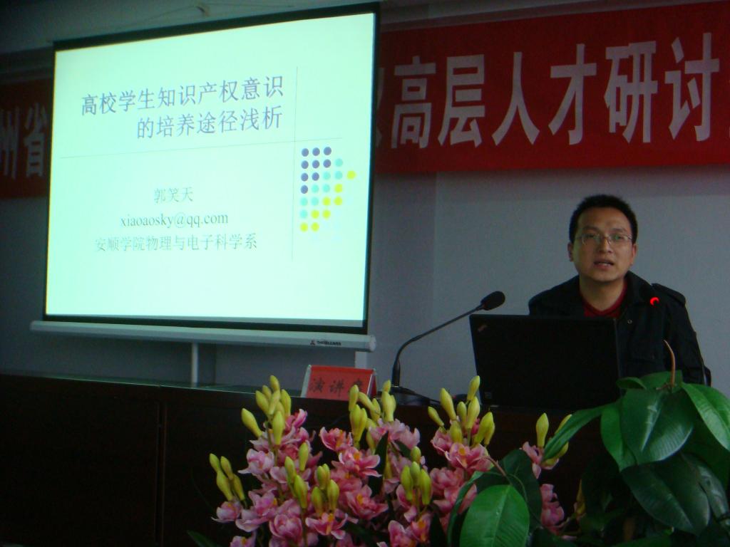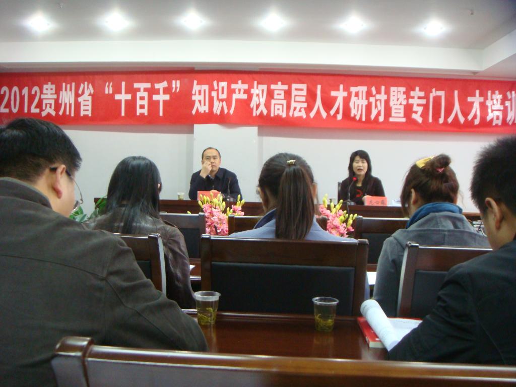 2012年11月5-7日,贵州省2012年贵州省"十百千"知识产权高层人才研讨暨专门人才培训在贵阳举办,贵州省知识产权局、贵州省工商局商标局、贵州省版权局、贵州安大航空锻造有限责任公司等13家单位的知识产权高层人才培养对象和贵州省20多所大专院校科研处和相关教学系部的老师参加培训,我校派出敖国富和郭笑天两位老师参加此次培训。