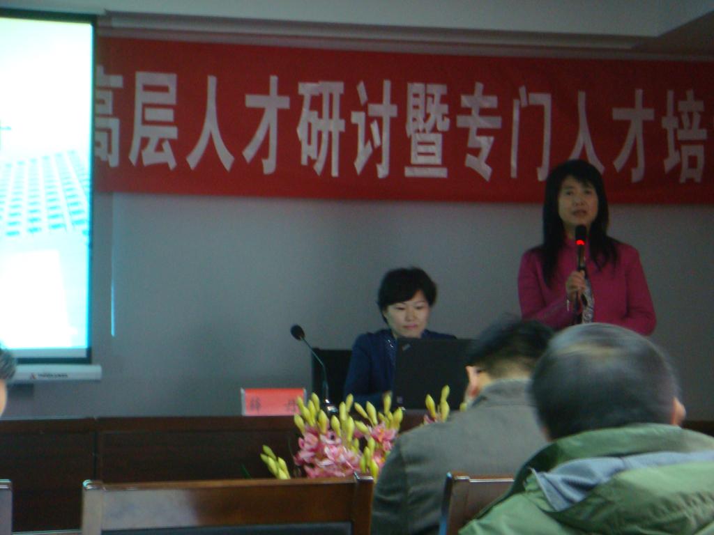 国家知识产权局人事司副司长薛丹(左)做报告